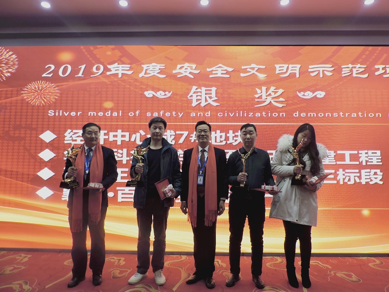 “2019年度安全文明示范項(xiàng)目銀獎(jiǎng)”: 經(jīng)開中心城7號(hào)地塊、清能正榮漢口北一期工程三標(biāo)段、華中科技大學(xué)校醫(yī)院改擴(kuò)建工程、襄陽(yáng)?百洋明日城市一期;頒獎(jiǎng)人:集團(tuán)公司總經(jīng)理高昌盛