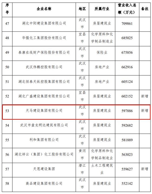 9月24日,在湖北省工商聯(lián)(總商會)十二屆七次常委會上,發(fā)布了“2021湖北民營企業(yè)100強(qiáng)暨社會責(zé)任報(bào)告發(fā)布會”。天馬建設(shè)集團(tuán)位列湖北民營企業(yè)百強(qiáng)榜第53位,排名上升18位,實(shí)現(xiàn)企業(yè)實(shí)力大跨越。