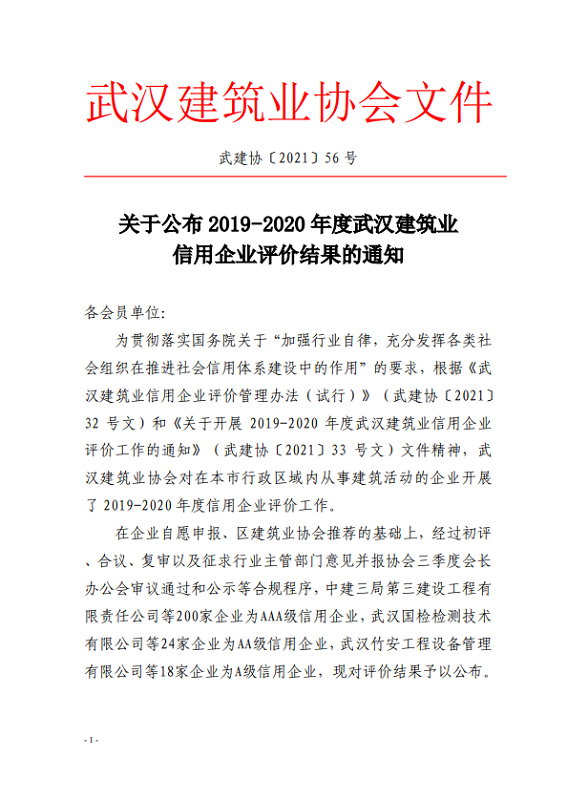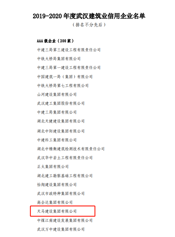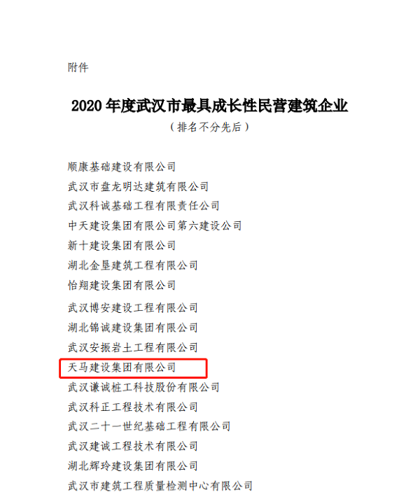 近日,天馬建設(shè)再度榮獲2020年度武漢市最具成長性企業(yè)和武漢建筑AAA級(jí)信用企業(yè)兩項(xiàng)殊榮。